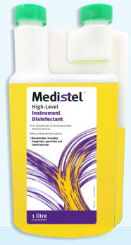 Medistel instrument disinfectant is intended for the chemical reprocessing of flexible and rigid endoscopes and surgical instruments, Medistel combines